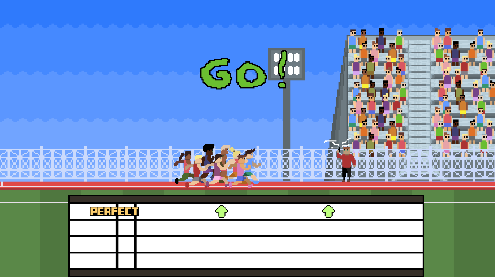 To be able to advance to the next race you must get at least third place and keep up with the beat, or you might trip up.